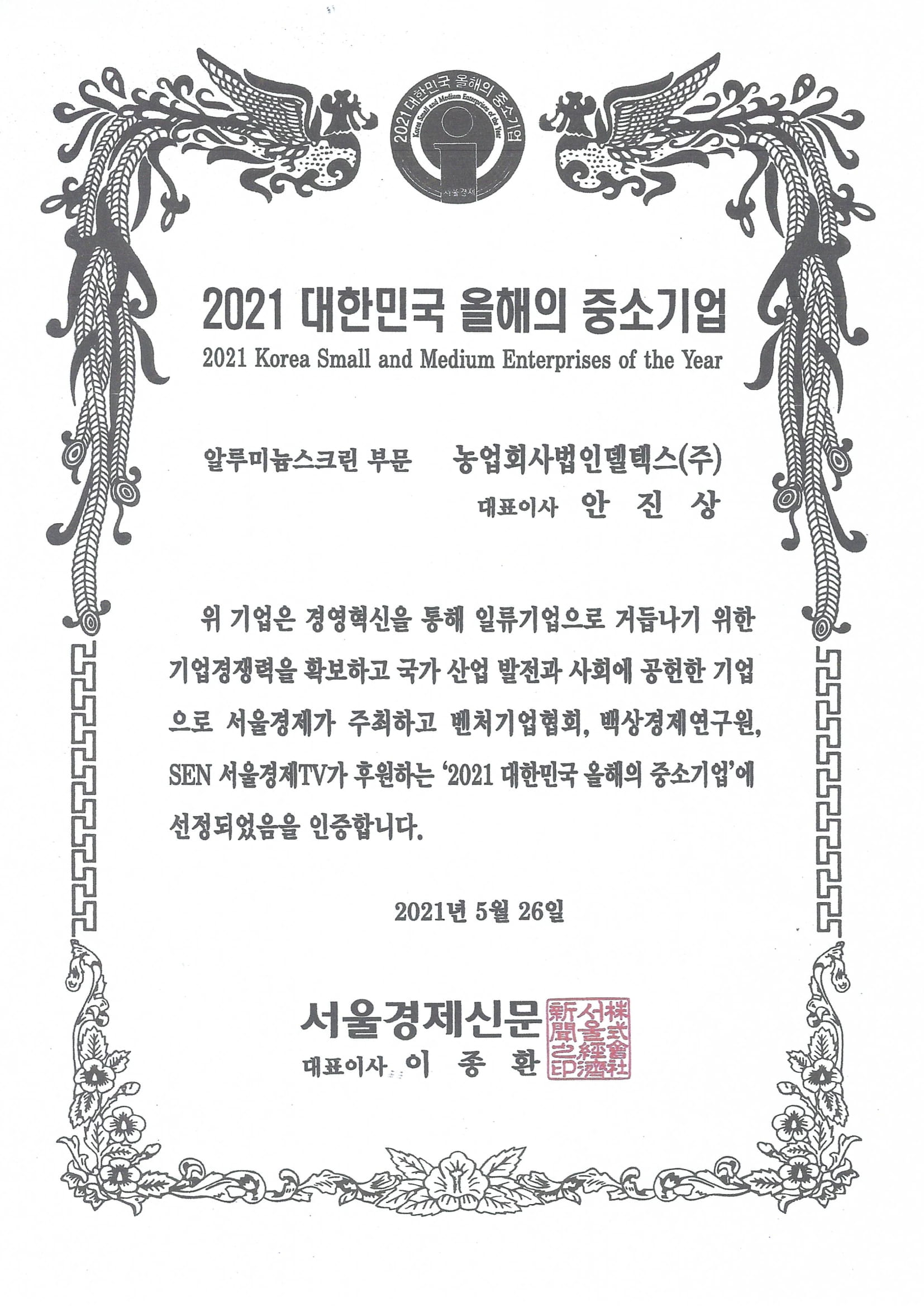 2021 대한민국 올해의 중소기업(서울경제신문)