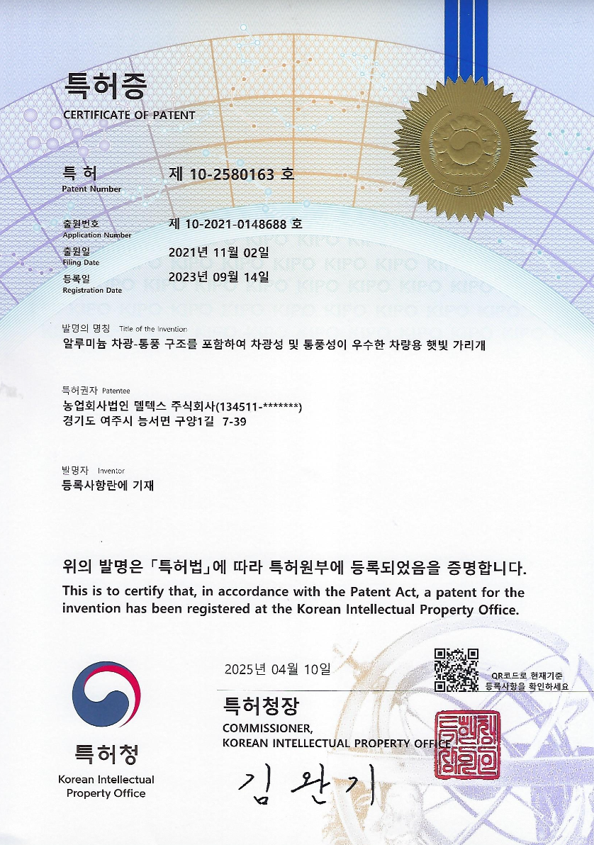 Deltex Co., Ltd. is the only company producing aluminum screens in Korea.Deltex Co., Ltd. will focus on maximizing net profit for the farm and the industry by reducing manufacturing costs and management costs.±¹³» ±âÈÄÁ¶Àý ÃÖÀûÀÇ ¾Ë·ç¹Ì´½ ½ºÅ©¸°À» »ý»ê°ú ´õºí¾î Çѹߴõ ³ª¾Æ°¡ À¯¸®¿Â½Çµî ½Ã¼³ºÐ¾ß¿¡¼ ¼¼°Ô·Î »»¾î³ª°¥°ÍÀÔ´Ï´Ù.