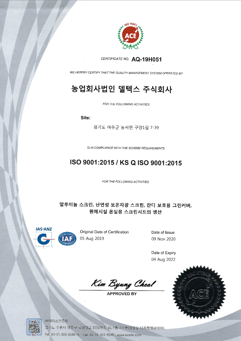 Our agricultural company, Del Tex Co., Ltd., is a company dedicated to providing better environment and saving energy by producing and distributing the best aluminum screen for facilities gardening and flower industry¼º½Ç âÀÇ Á¤ÀǸ¦ ¹ÙÅÁÀ¸·Î °í°´¸¸Á·À̶ó´Â ¼ºñ½º¿Í ǰÁú·Î °í°´¼º¿ø¿¡ º¸´äÇϸç, ¼º´ÉÀÌ ¿ùµî ¿ì¼öÇÔ°ú µ¿½Ã¿¡ Çâ»óµÈ ¾Ë·ç¹Ì´½Á¦Ç°À» »ý»êÇÏ¿© ³ó°¡¼Òµæ¿¡ Å©°Ô ±â¿©ÇÏ´Â ±â¾÷ÀÌ µÉ°ÍÀÔ´Ï´Ù.